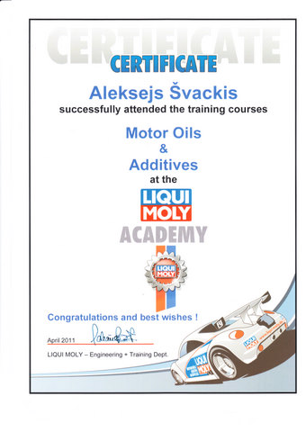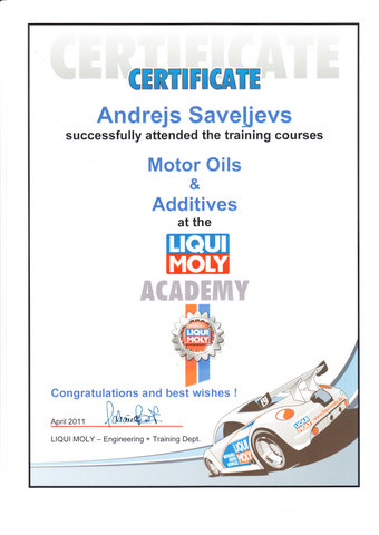 Специализированный сервисный центр по замене масел SIA "RAAP" готов обслужить самых требовательных клиентов, потому что в работе используется новейшее профессиональное оборудование и продукция компании LIQUI MOLY. Благодаря широкому ассортименту продукции этой компании и накопленному опыту работе - наши сотрудники всегда смогут подобрать то решение, которое подходит именно Вашему автомобилю. Каждому новому клиенту LIQUI MOLY выдаётся специальная сервисная книжка, в которой Вы всегда сможете увидеть, насколько качественно и своевременно обслуживался автомобиль.